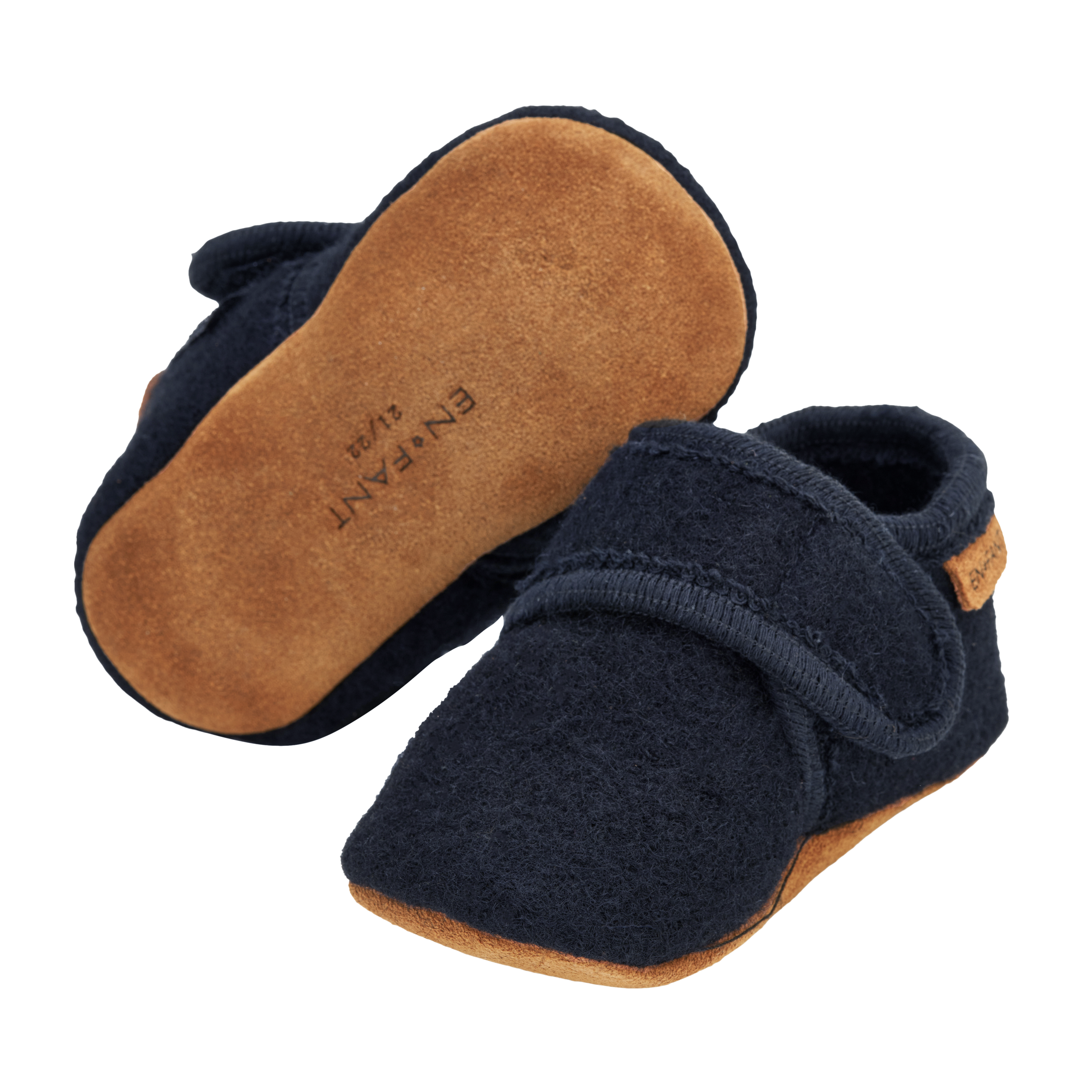 Diese hochwertigen Babyschuhe von En Fant bestehen aus 100% Merinowolle und bieten mit gefaltetem Bündchen an den Knöcheln einen sicheren Sitz. Die robuste Ledersohle aus strapazierfähigem Veloursleder sorgt für Stabilität und Langlebigkeit. Perfekt als Hausschuh bieten sie einen sanften, komfortablen Sitz für zarte Babyfüsse.