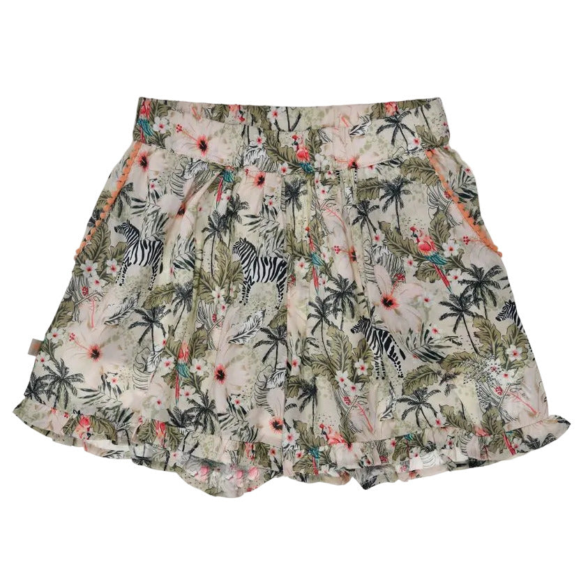 Der Bondi Hosenrock „Girls Jungle“ begeistert mit seinem fröhlichen, tropischen Muster und ist der ideale Begleiter für sonnige Tage. Die raffinierte Kombination aus Rock und integrierter Shorts vereint eine verspielte Optik mit praktischer Funktionalität und sorgt für optimale Bewegungsfreiheit beim Spielen, Toben und Tanzen. Der leichte, luftige Stoff trägt sich angenehm auf der Haut und macht den Hosenrock besonders komfortabel – selbst bei warmen Temperaturen. Dank des elastischen Bundes sitzt er bequem und passt sich perfekt an. Ob im Alltag, im Kindergarten oder im Urlaub – dieses sommerliche Lieblingsstück lässt sich vielseitig kombinieren und bringt mit seinem trendigen Jungle-Design frischen Schwung in jede Mädchengarderobe.