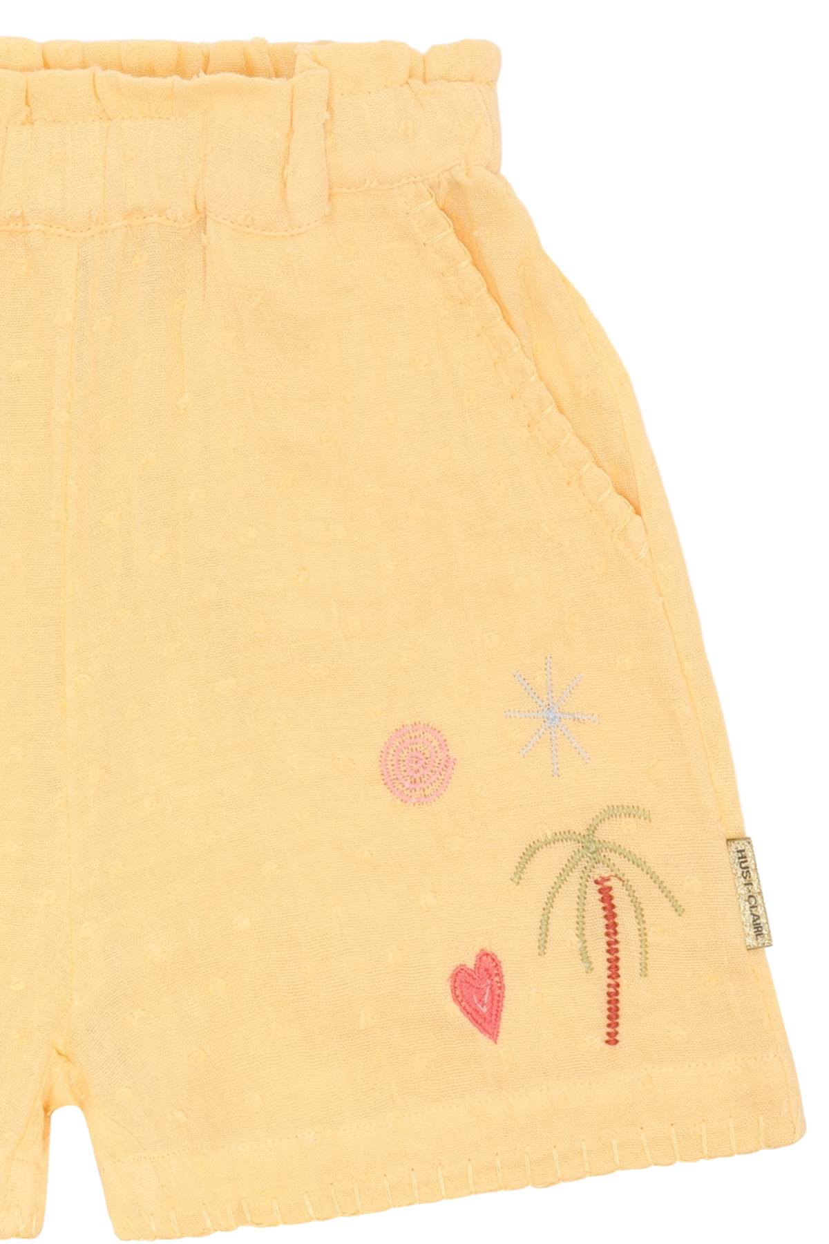 Leichte Mädchen-Shorts von HUST & CLAIRE für den Sommer. Aus reiner Baumwolle gefertigt, bieten sie maximalen Tragekomfort und Atmungsaktivität an warmen Tagen. Das klassische Design in der Farbe Nectar passt zu vielen Lieblingsteilen im Kleiderschrank. Perfekt für Spiel, Schule und Freizeit.