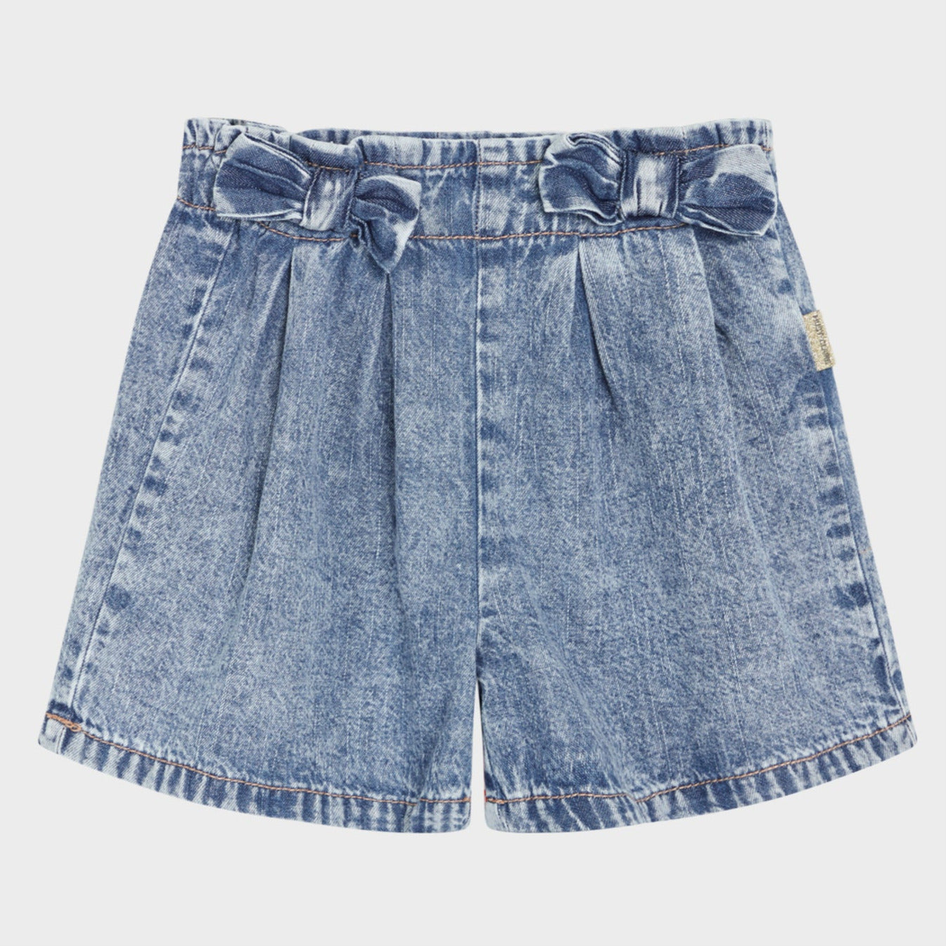 HUST & CLAIRE präsentiert die perfekten Jeans Shorts für Mädchen. Diese Denim-Optik Shorts überzeugen mit einem bequemen Elastikbund und anpassbarer Taille, sowie mit niedlichen Zierschleifen vorne. Stilvoll und funktional zugleich für einen trendigen Sommer-Look.