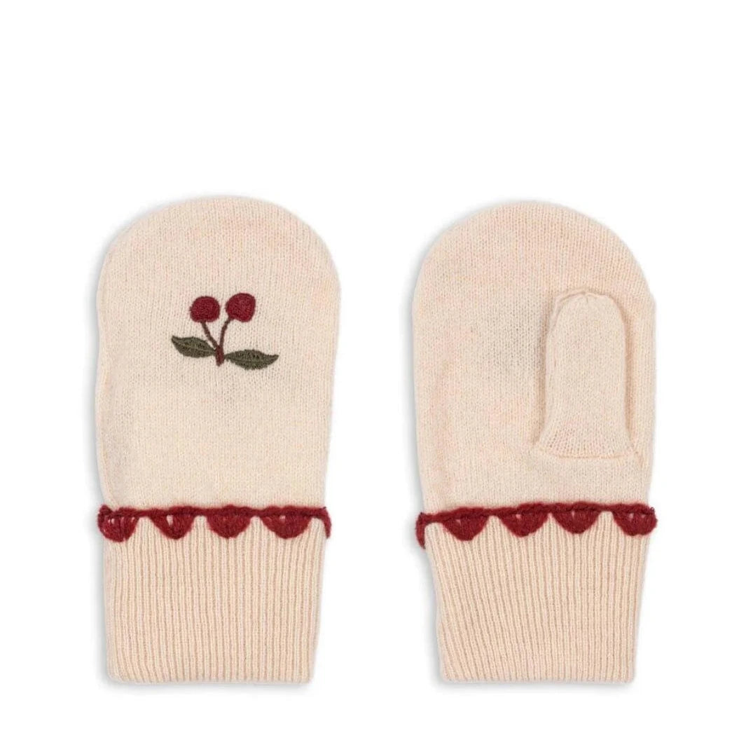 Diese feinen Strickhandschuhe „Collette“ von Konges Sløjd überzeugen mit einem zarten Kirschmuster und hochwertiger, reiner Wolle. Ihr weiches Material sorgt für angenehmen Tragekomfort und optimale Wärme, ideal für kühle Tage. Die sorgfältige Verarbeitung garantiert eine langlebige Begleitung durch die kalte Jahreszeit.