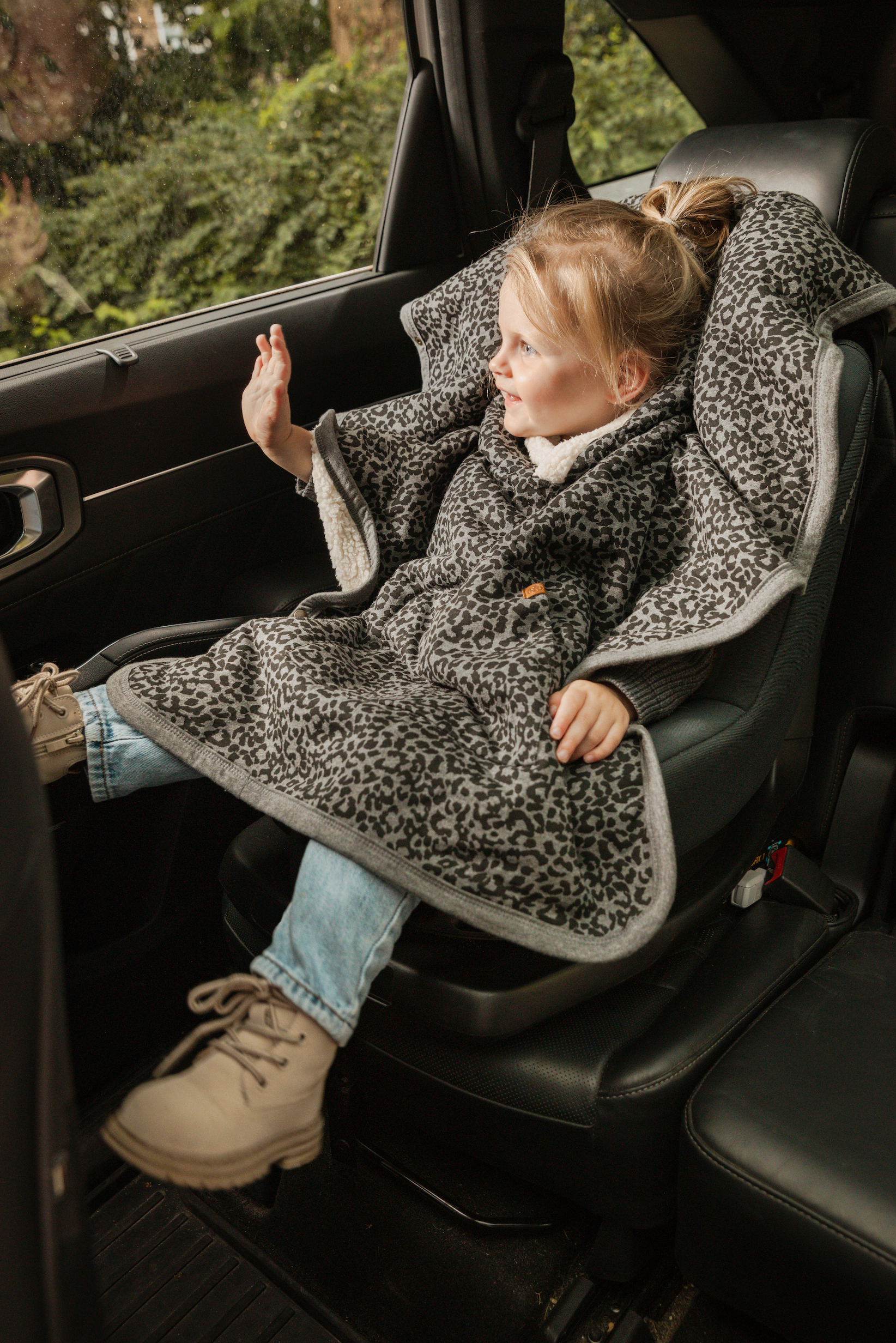 Der Poncho ist auch ein idealer Reisebegleiter. Es eignet sich perfekt für die Verwendung in einem Autositz, wo dicke Jacken im Allgemeinen nicht unter Sicherheitsgurten getragen werden sollten. Der Poncho lässt sich bequem über den Trägern tragen. Es hat keinen Einfluss auf die Leistung des Autositzes und sorgt dafür, dass dein Kind bequem und sicher unterwegs ist.