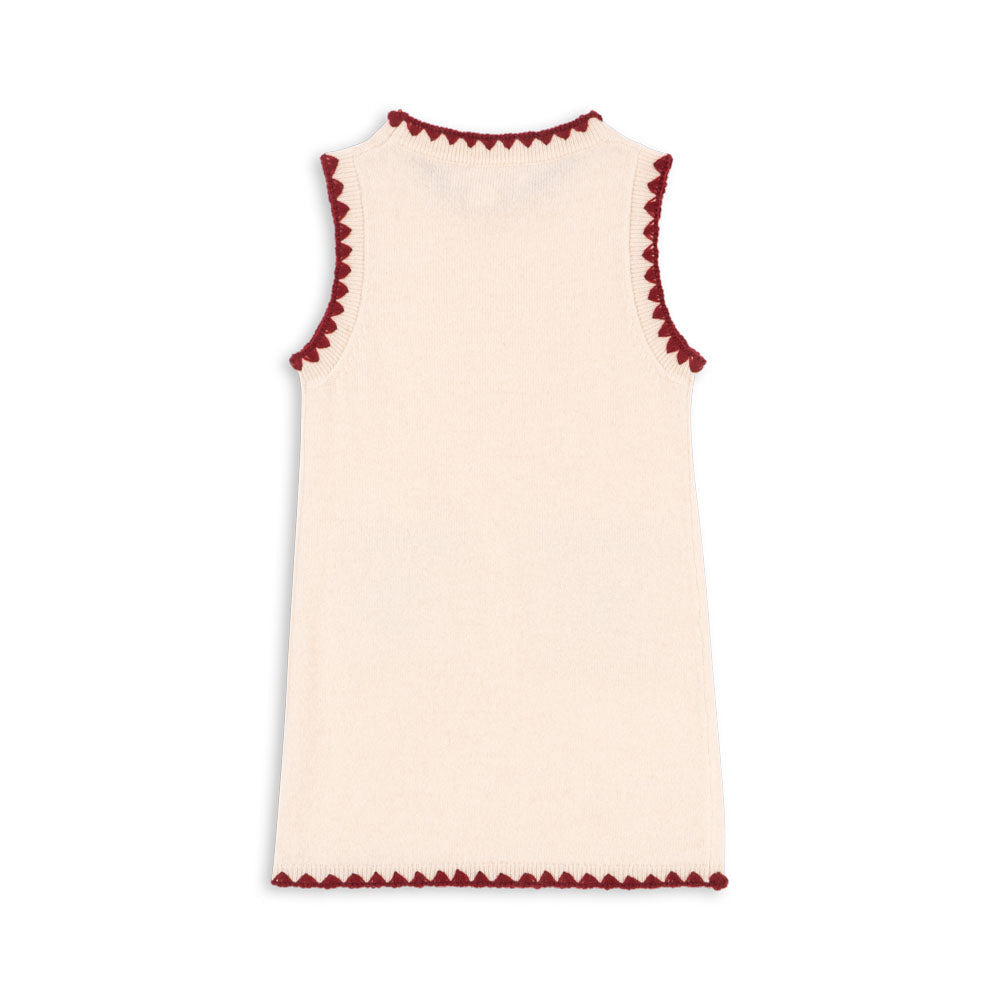 Das gestrickte Wollkleid „Collette“ von Konges Sløjd besticht durch seine ausserordentlich weiche und angenehme Qualität. Mit zarter Kirsch-Stickerei verziert, bietet es eine elegante, gerade und figurbetonte Passform. Praktische Fronttaschen runden das Design ab. Hergestellt aus 100% hochwertiger Wolle gewährleistet das Kleid Wärme und Komfort für jedes Mädchen.
