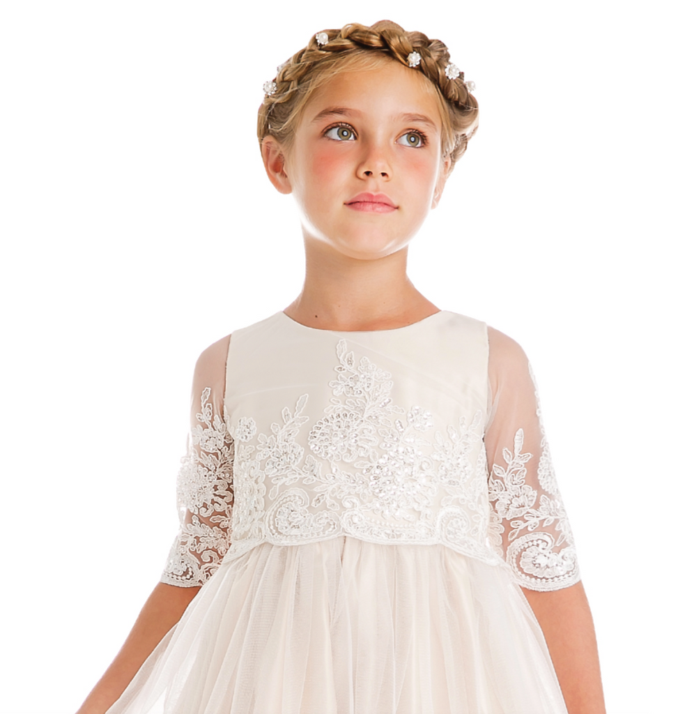 ABEL & LULA - Kleid aus besticktem Tüll beige