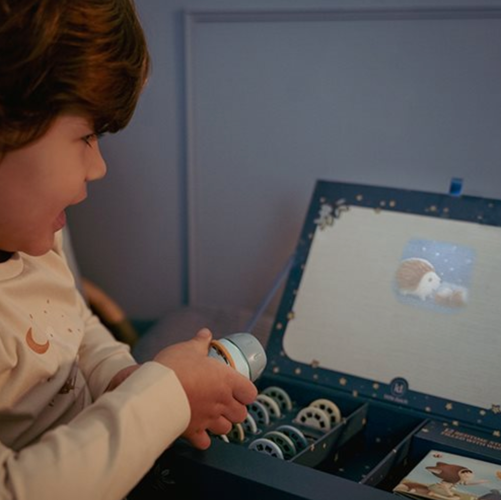 Tauchen Sie mit dem LITTLE DUTCH Geschickten Projektor in magische Geschichten ein! Mit 12 bezaubernden Scheiben und passenden Heften können Sie die einzigartigen Illustrationen an die Wand projizieren und Ihre Fantasie entfachen. Der stabile Holzgriff und die Aufbewahrungsbox machen diese Taschenlampe zum idealen Begleiter für Kinder, die Geschichten lieben. Nach der Geschichte können Sie die Taschenlampe und das gesamte Zubehör einfach in der hübschen Aufbewahrungsbox verstauen. Batteriebetrieben für grenzenlosen Spass auch unterwegs!