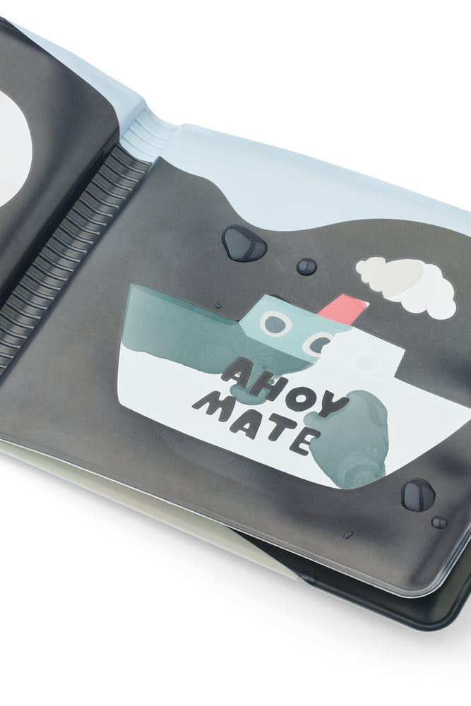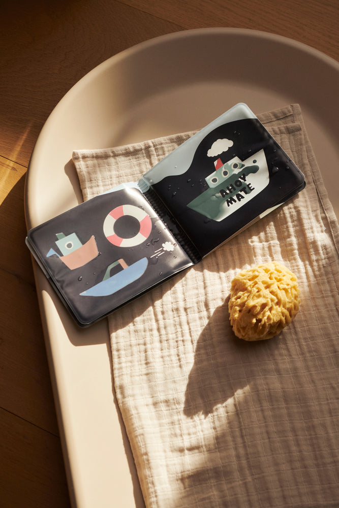 • Ein schwimmendes Badebuch mit verspielten Zeichnungen