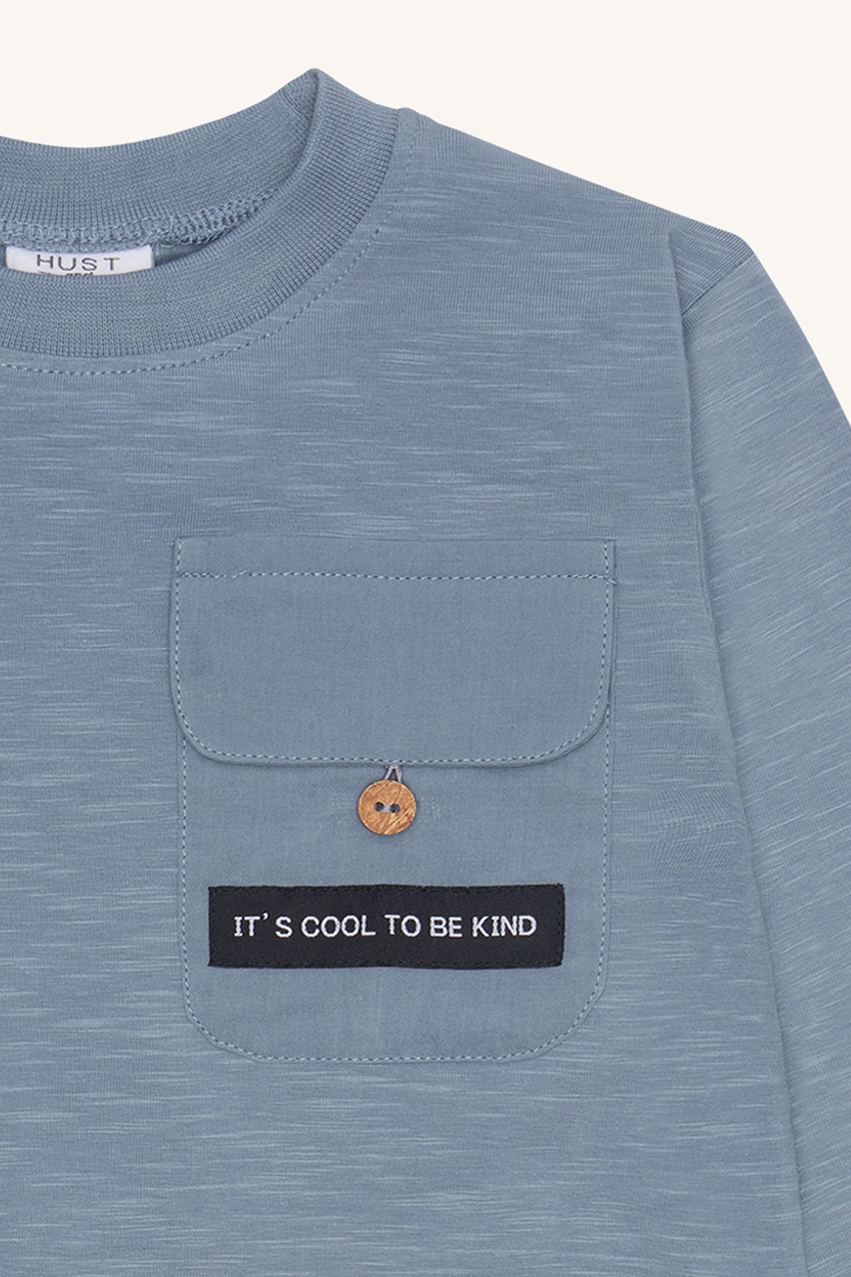 Das HUST & CLAIRE Langarm Shirt HCAnton besteht aus Baumwollstretch und verfügt über einen Rundhalsausschnitt und eine Brusttasche mit dem Aufdruck "It's cool to be kind". Dank des Stretchmaterials bietet es eine bequeme Passform und die Botschaft auf der Tasche vermittelt ein positives Statement. Zudem ist das T-Shirt GOTS-zertifiziert.