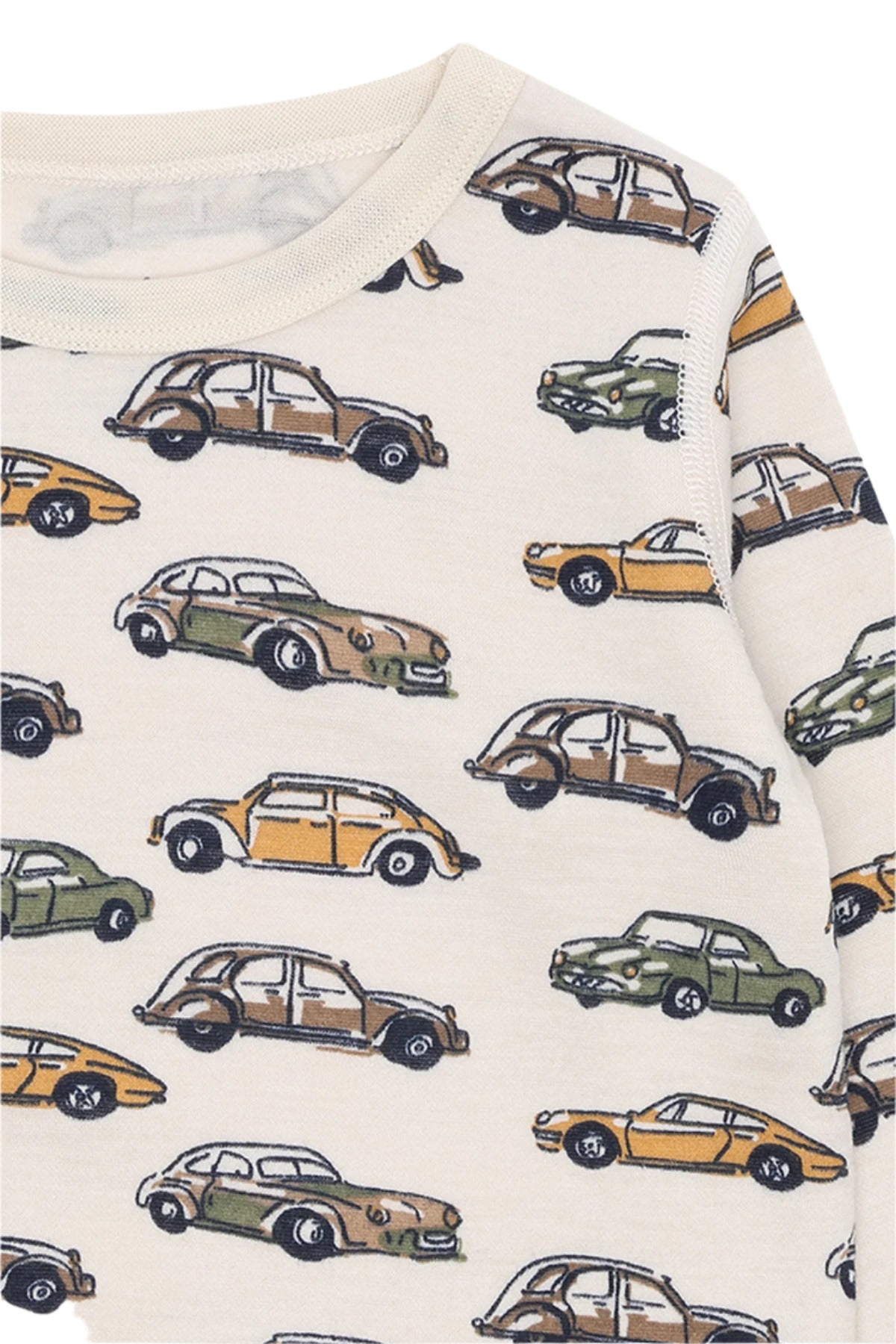 Das HUST & CLAIRE Langarmshirt HCAwo aus hochwertiger, weicher Merinowolle bietet ausgezeichneten Tragekomfort dank seiner dehnbaren Materialqualität. Das Shirt überzeugt mit einem coolen Design von Autos und ist Oeko-Tex 100® zertifiziert, was eine schadstofffreie und nachhaltige Herstellung garantiert. Ideal für empfindliche Kinderhaut, verbindet es Funktionalität mit stilvollem Aussehen.