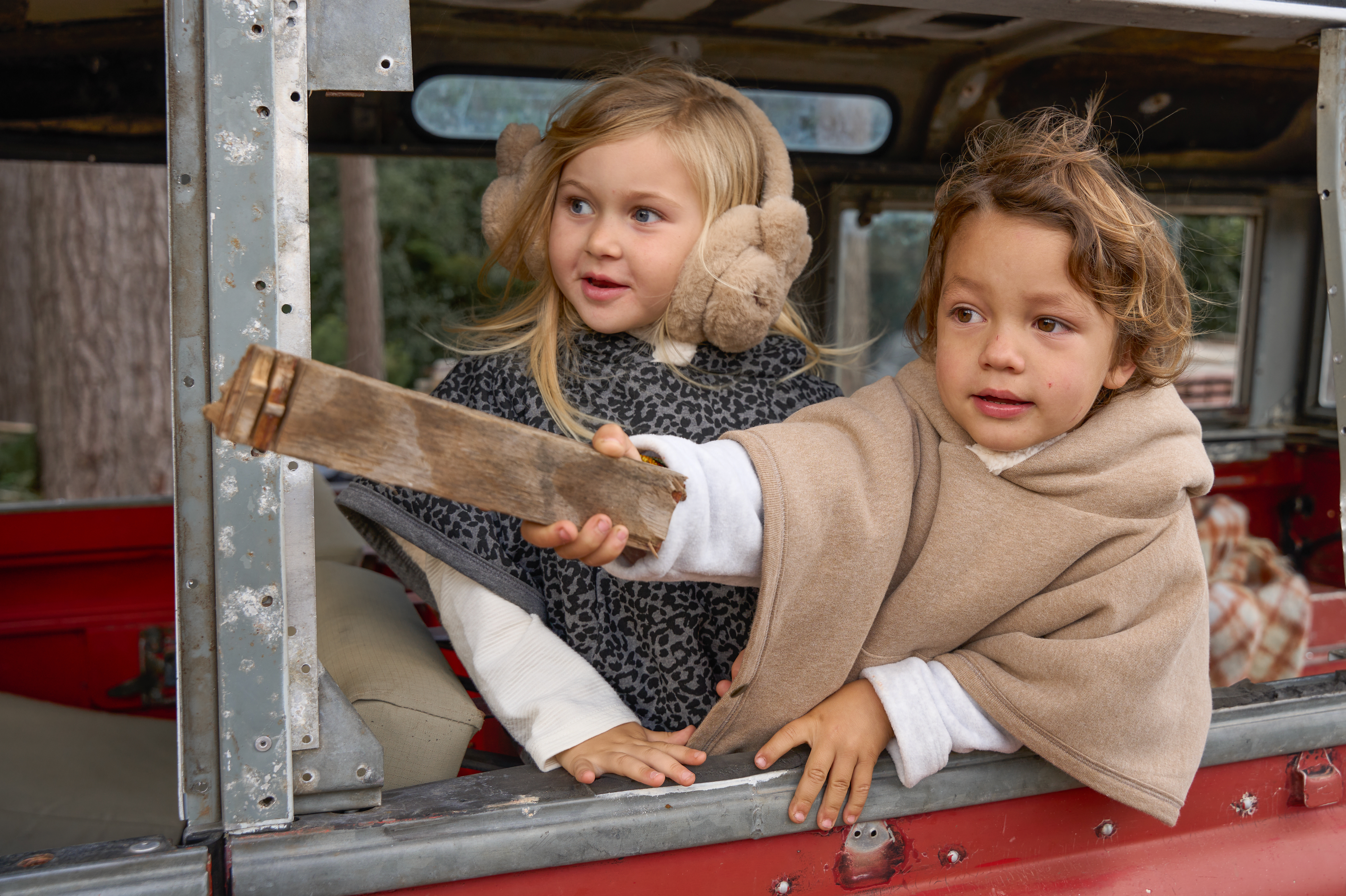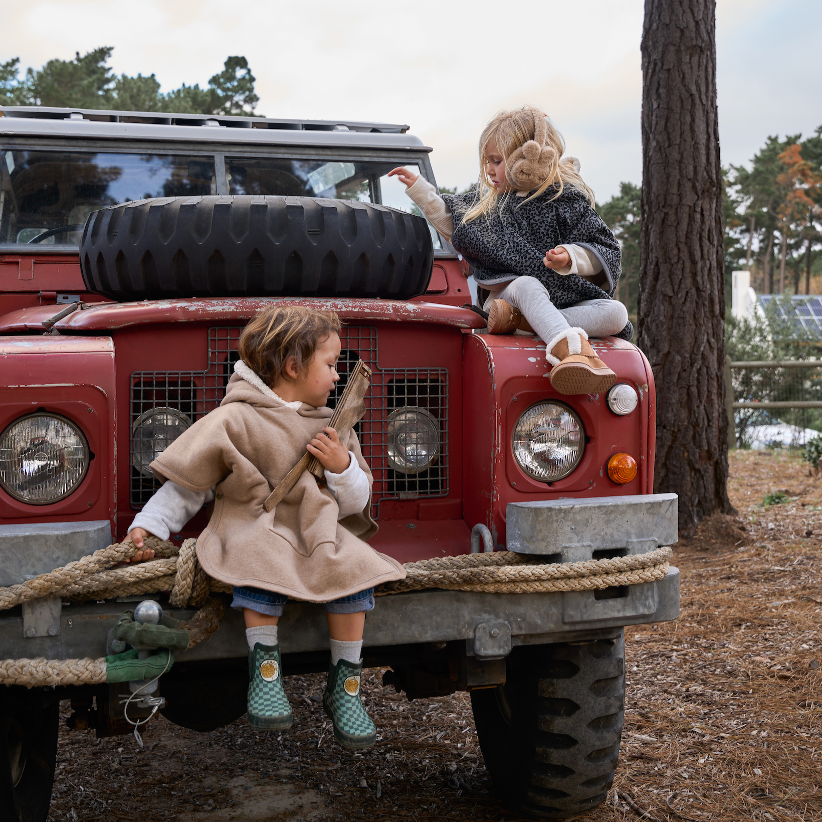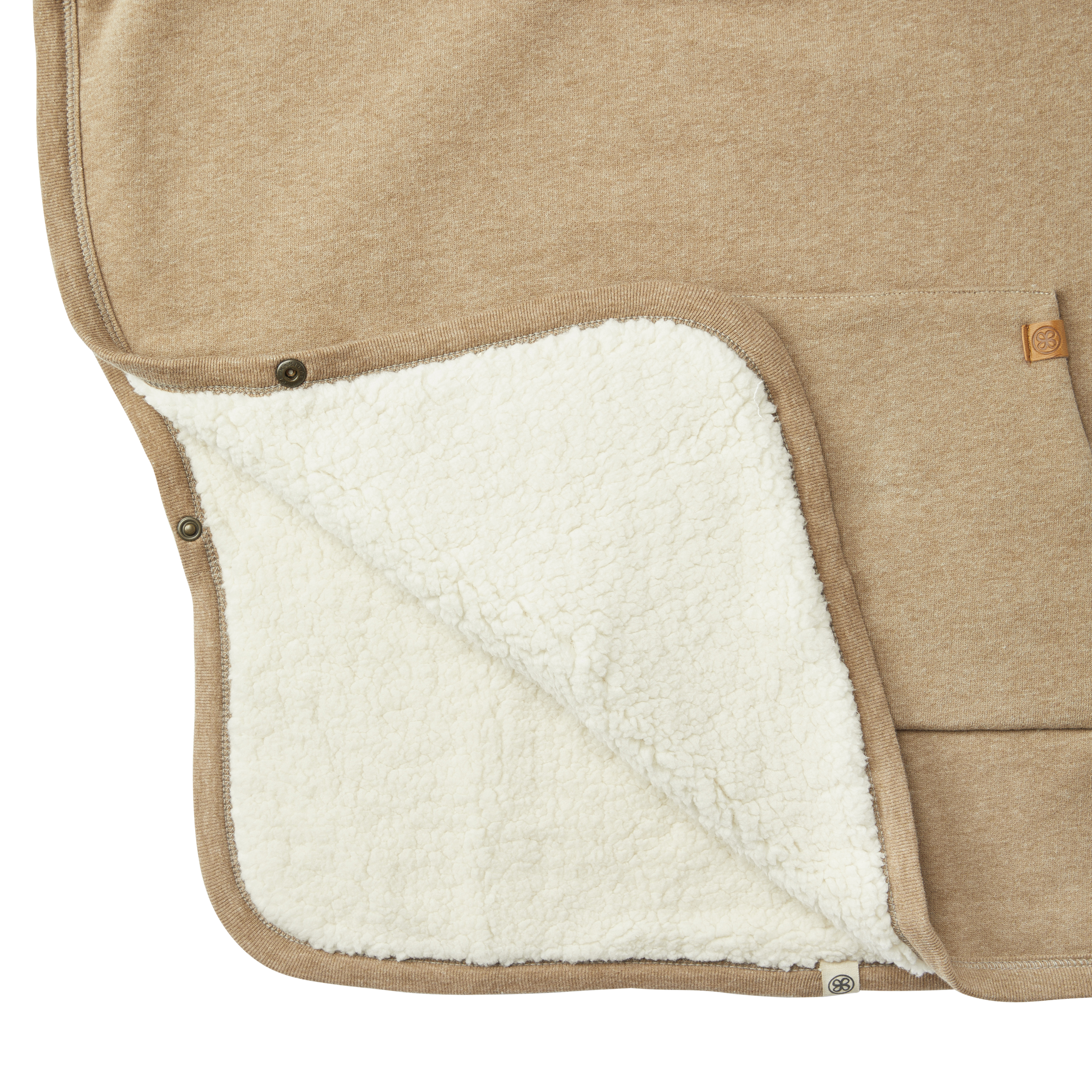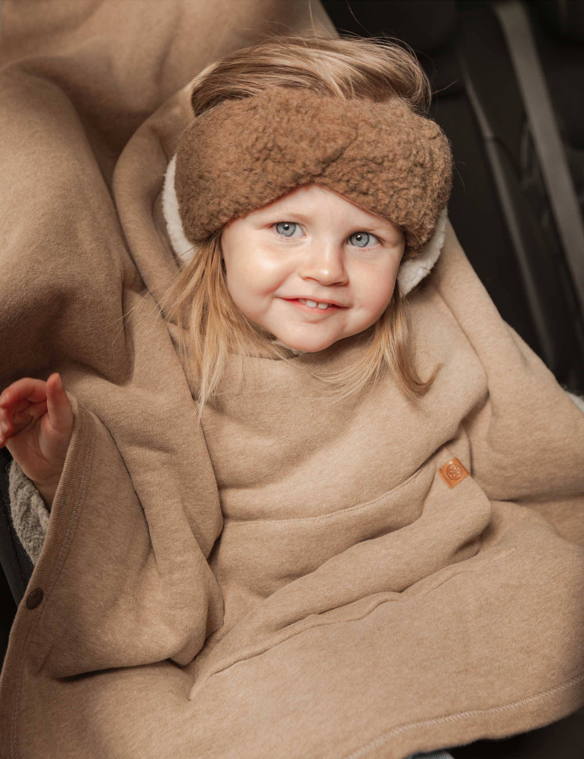 Mit einem Knopf unter den Armen, der einen Ärmel bildet, lässt sich der Poncho ganz einfach an- und ausziehen. Der Poncho ist auch ein idealer Reisebegleiter. Es eignet sich perfekt für die Verwendung in einem Autositz, wo dicke Jacken im Allgemeinen nicht unter Sicherheitsgurten getragen werden sollten. Der Poncho lässt sich bequem über den Trägern tragen. Es hat keinen Einfluss auf die Leistung des Autositzes und sorgt dafür, dass dein Kind bequem und sicher unterwegs ist.