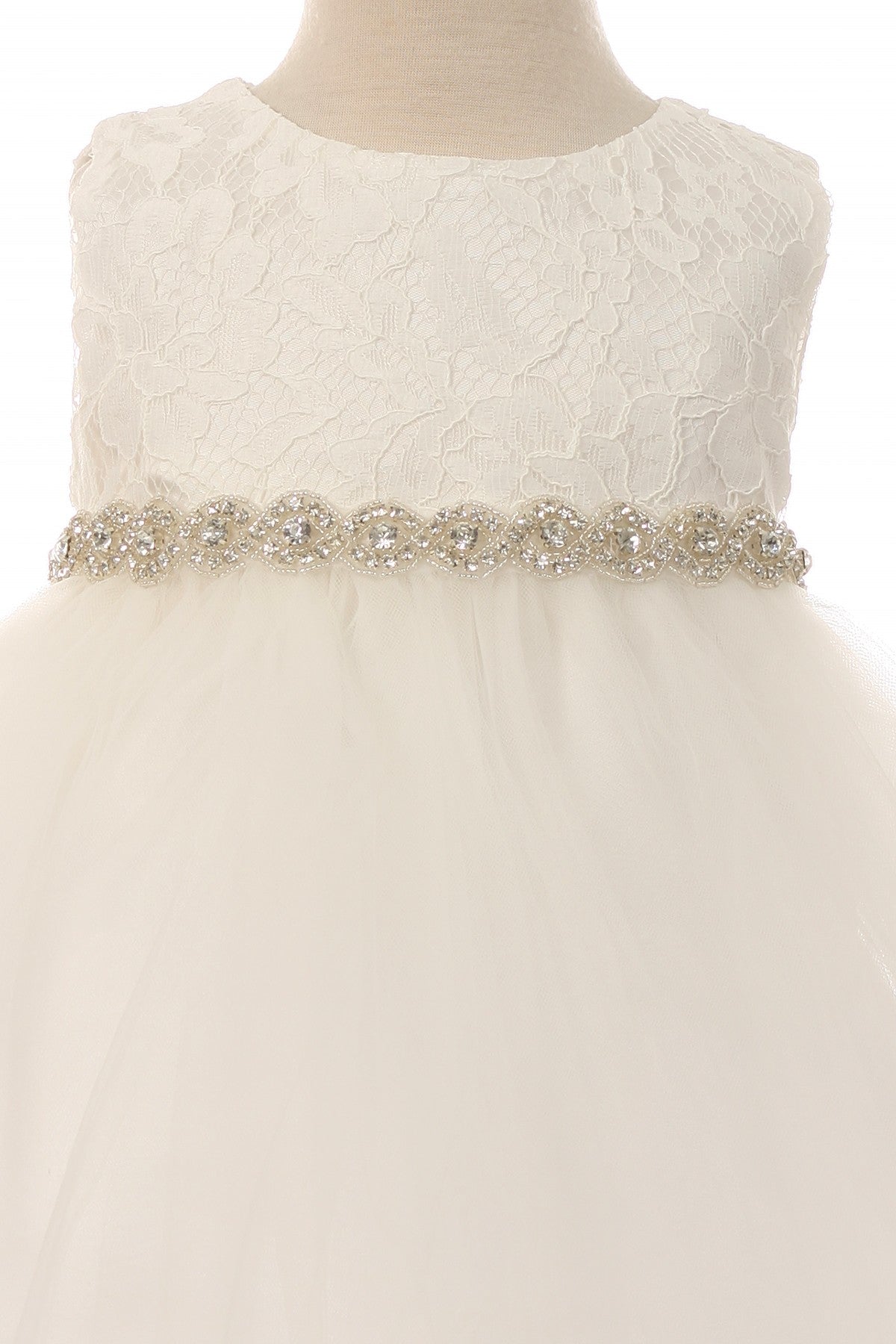 Das bezaubernde Kleid Annique aus angenehmer, weicher Spitze und Tüll besticht durch die wunderschönenhandgefertigen Applikation. Der Rock wirkt durch den besonderen Schnitt und der oberen leichten Tüll-Rocklage bezaubernd. Die Glitzersteinchen um die Taille verzieren das Kleid auf besondere Weise.