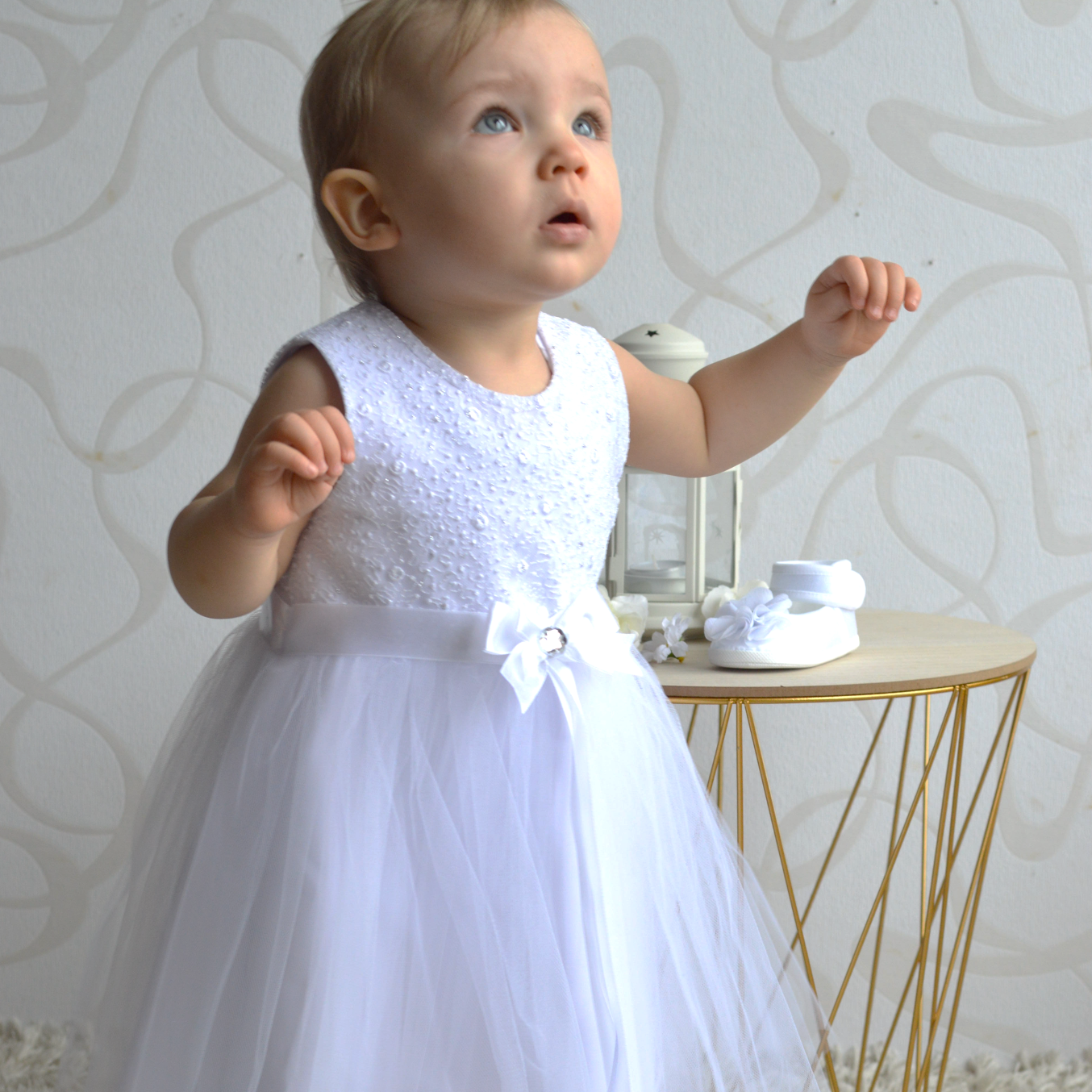 Das Kleid Timea aus angenehmem Satin und Tüll besticht durch die wunderschönen floralen handgefertigen Stickereien. Der Rock wirkt durch den besonderen Schnitt der oberen leichten Tüll-Rocklage bezaubernd.
