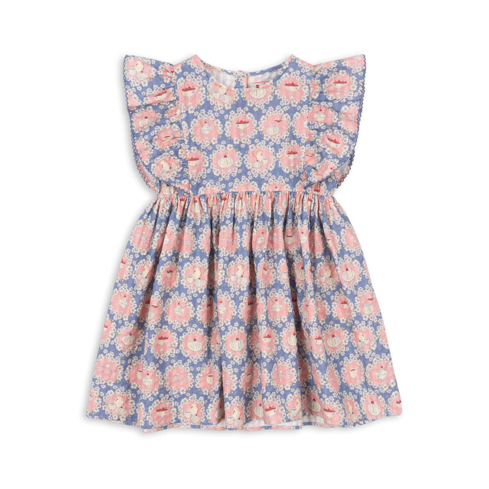 Das Kim Kleid von Konges Sløjd verkörpert zeitlose Eleganz für den Sommer. Gefertigt aus 100% Bio-Baumwolle in feiner Seersucker-Qualität, besticht das Kleid durch seine angenehme Leichtigkeit und Atmungsaktivität. Charakteristische Details wie Rüschensäume, Lochstickerei an den Säumen und dekorative Perlmuttknöpfe auf der Rückseite verleihen dem Kleid seinen klassischen Charakter. GOTS-zertifiziert und aus kontrolliert biologischem Anbau, garantiert das Kleid höchste Qualitätsstandards und Nachhaltigkeit für anspruchsvolle Eltern.
