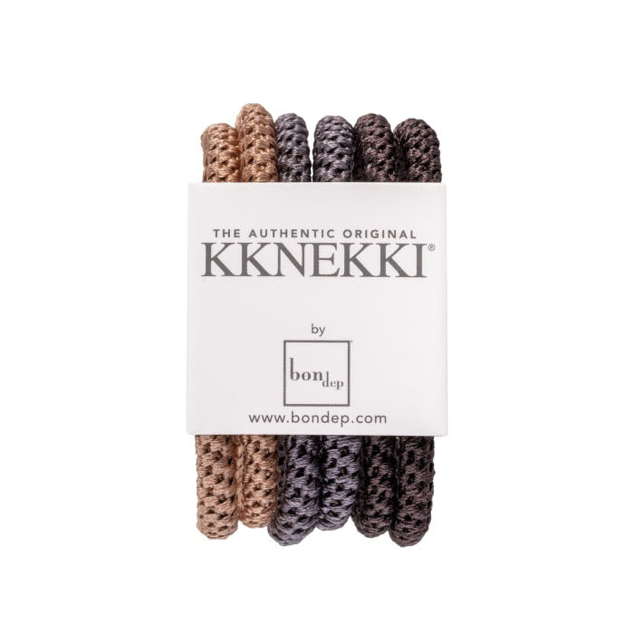 KKNEKKI Slim ist die verfeinerte Variante des originalen KKNEKKI Haargummis, entwickelt für feineres Haar und dezente Looks. Dieses 6er-Set bietet eine elegante Farbauswahl, die jeden Stil ergänzt. Geflochten aus über 60 Einzelthreads auf Vintage-Webstühlen der 1960er Jahre garantiert es hohe Qualität, Tragekomfort und Langlebigkeit – ganz ohne Ziehen oder Verknoten der Haare. Ideal für alle, die eine zarte, dennoch robuste Lösung für den täglichen Gebrauch suchen.