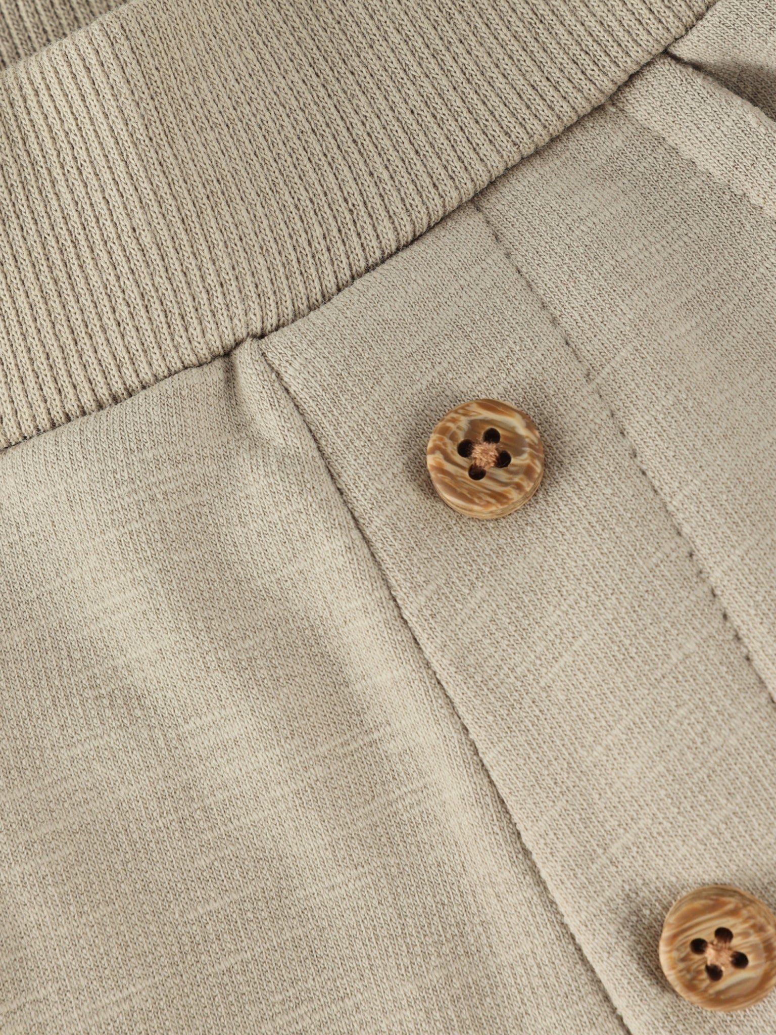 Hochwertige Sweatpants von Minymo aus zertifizierter Bio-Baumwollmischung. Das Modell besticht durch seine schlichte, zeitlose Optik und praktische Details: elastische Bündchen an Taille und Knöcheln sorgen für optimalen Sitz, während zwei dekorative Knöpfe und funktionale Vordertaschen das Design abrunden. Die weiche Strickqualität bietet maximalen Tragekomfort für aktive Tage. GOTS-zertifiziert für nachhaltige Qualität.