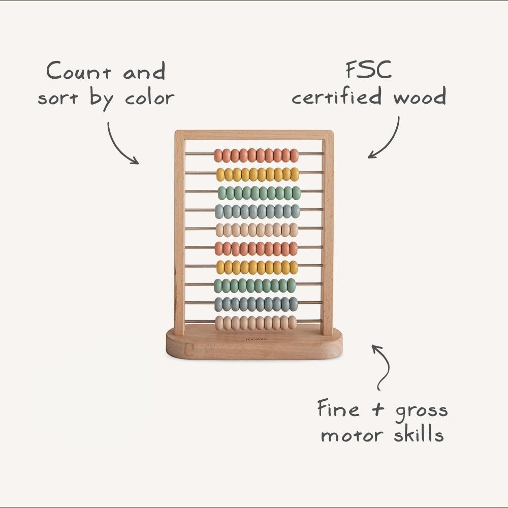 Der Abakus von Mushie ist ein zeitloses Lernspielzeug, das Kinderzimmer und Spielbereiche bereichert. Mit seiner beruhigenden, gedeckten Farbpalette fördert dieses sorgfältig gefertigte Holzspielzeug das Zählen, die Farbsortierung und das Erkennen von Mustern durch aktives Entdecken. Die glatten Holzperlen gleiten mühelos über stabile Stäbe und unterstützen die Entwicklung der Feinmotorik sowie das frühe mathematische Verständnis. Aus FSC-zertifiziertem Holz gefertigt und mit ungiftiger, kinderfreundlicher Farbe behandelt, verbindet der Abakus Funktionalität mit ästhetischem Charme. Ein praktisches Lernwerkzeug und dekoratives Accessoire zugleich – perfekt für Kleinkinder und Vorschulkinder.