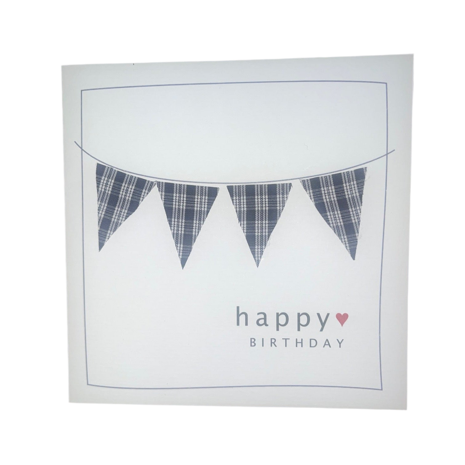 Hochwertige PCard-Geburtstagskarte mit dekorativen Stoff-Flaggen, handgefertigt in der Schweiz.