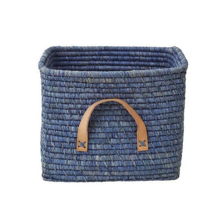 RICE - Aufbewahrungskorb Bast Raffia Square Blau