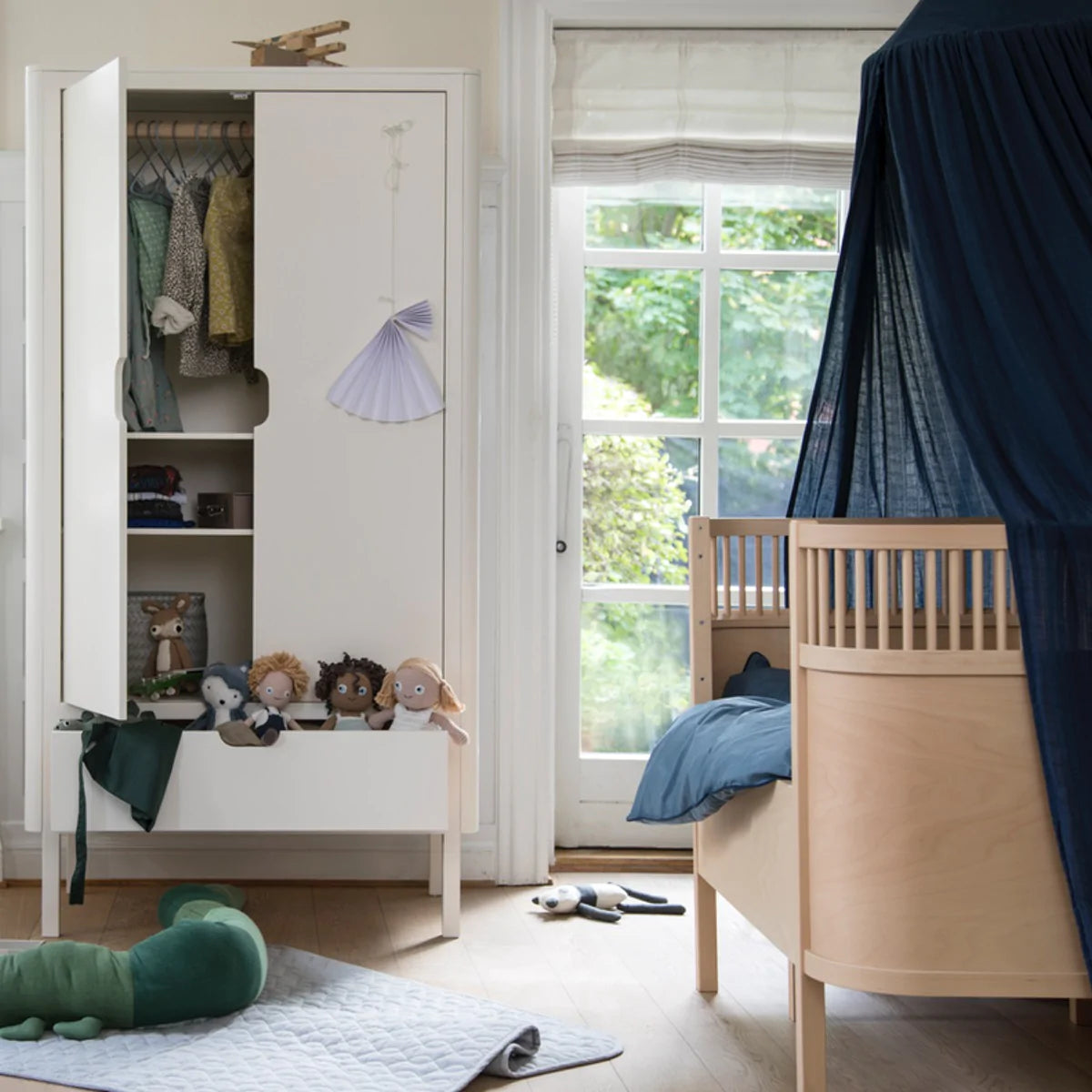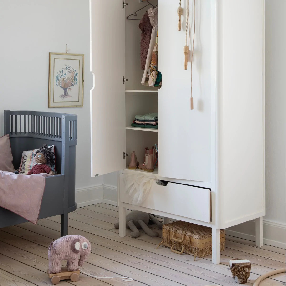Das elegante skandinavische Design von Sebra wird nun durch einen Kleiderschrank mit zwei Türen ergänzt. Der geräumige Schrank verfügt über viel Stauraum und harmoniert perfekt mit den übrigen Möbeln des Labels.